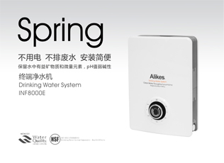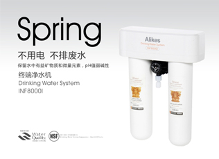 Alikes INF8000E凈水機,采用國際流行的雙芯過濾的101水道平臺,食品級高強材料成型……